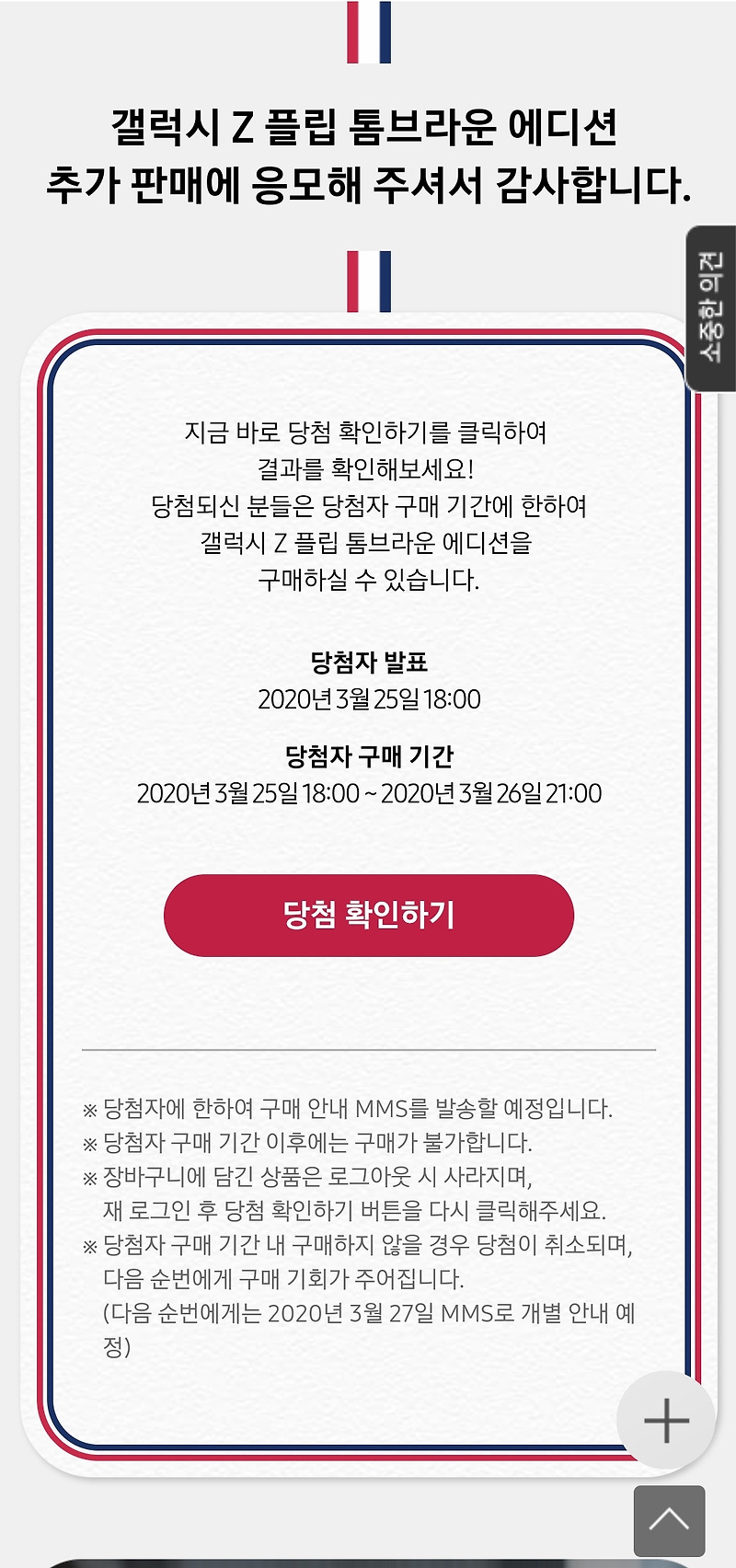 톰브라운 에디션 구매 / Qkrfawxhzjpnnm : 당첨자는 25일 오후 6시에 공지되며 당첨자는 26일 21시까지 구매 가능하다.